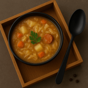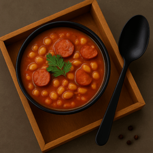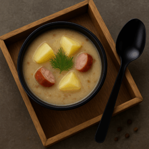 boczek, cebula, czosnek, pietruszka, sos śmietanowy, przyprawy