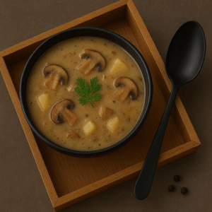 pieczarka, podgrzybek, cebula, czosnek, koperek, sos śmietanowy, przyprawy